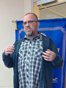 Ray introduced Brian Stengel, director of Silver City Street Outreach. He thanked the club for inviting him to speak about the hot topic of homelessness. He said they are trying to move away from the term “homeless” because there is so much stigma around that. Some new vocabulary used is “precariously housed,” “couch surfing,” “houseless”. He shared his personal experience. His program is service, serving others who are trying to get sober and all unhoused folks. His outreach program started unofficially a couple of years ago with a member of The Commons making food bags and taking them into the homeless community. He started
