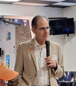 Ray introduced Tom Simon, our District Governor. Tom thanked us for the invitation to be here. The last time he and Deborah were here was for the celebration of the club’s 100th anniversary. He gave a brief autobiographical sketch of his background. He said that tomorrow he and Deborah would be visiting one of our honorary members Bill Harrison who is 103. Jerry Ouzts read a commendation that Bill would be presented with. Then Tom said he would like to introduce us to another Rotarian who is 157 years old, Paul Harris, the founder of Rotary. Tom then told us Paul Harris’ story. Rotary didn’t start out as a service organization but as a connection with other business people. The first service project ever in Rotary was that the first Rotary club put in comfort stations in Chicago. This service project inspired the dual mottos of “Service above Self” and “He Profits Most who Serves Best.” Rotary believes in sustainability in everything they do. So when they do a district grant or global grant, sustainability is one of the greatest concerns to make sure that what is done is valued long after the Rotarians have left. Tom mentioned some of the service projects of our club—Fairgate, the Hygiene Project, Indian Springs Ranch, Toss No Mas, the work with Commons. He said that, in doing these projects with other groups or organizations, we are embodying this year 's Rotary theme of “Unite for Good.” Rotary has become a peace building organization through its work in other countries. It has led to friendship, cooperation, understanding and recognizing our interconnectedness. Tom gave several examples of Rotary’s work around the world in Ukraine, Israel, Russia through global grants, the engine of peace. He then changed the topic to membership. He said many clubs are struggling to maintain membership. He asked several members to share why they joined Rotary. Tom passed out tools to be used for attracting new members. In conjunction with this Larry Donigan shared that he gives wine tours where he always talks about Rotary to the guests. The District Governor then passed out a calendar of events for the district, and then opened the meeting for questions.
